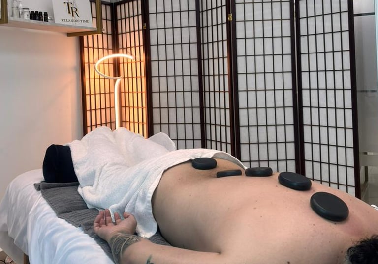Masaje profundo con piedras volcánicas calientes que relajan los músculos, reducen el estrés y brindan una sensación de bienestar total.